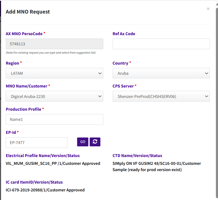 No. of Profile > Depending upon the number of profiles chosen here from the dropdown, the same number of MNO’s (Mobile Network Operator) will be present in the request.