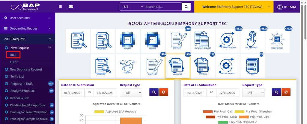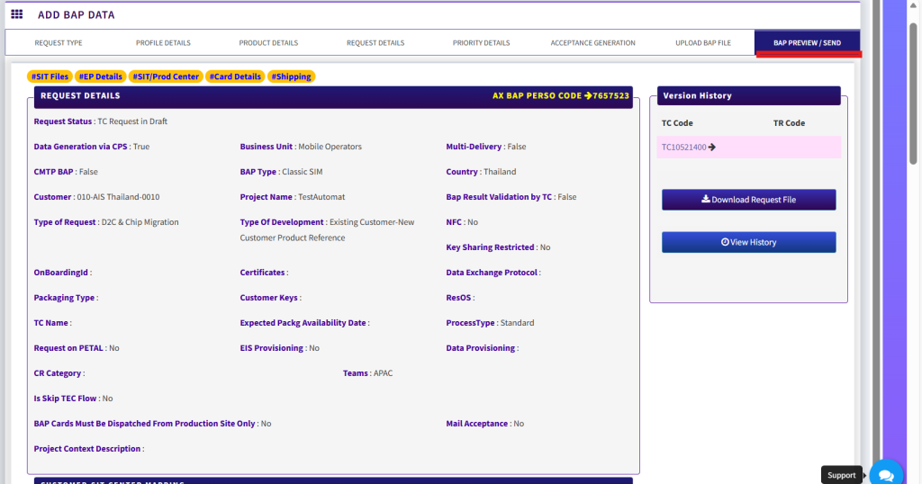 - Key Ceremony Done > BAP Request will only be allowed to send further to TEC/Pre-Prod team only in case Key Ceremony done is marked as “Yes”. TC needs to ensure that Key Ceremony is already done prior to proceeding with BAP request on SIMPhony. Option of “No” is available only to save request in draft mode.