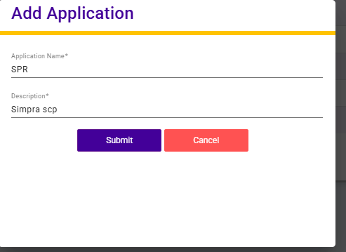 Users need to enter the Application Name and provide a Description to briefly explain the purpose of the application. Once the required details are submitted, the application is saved and added to the application list.