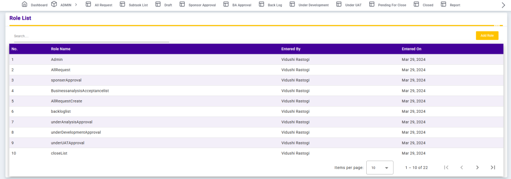 This screen ensures structured role management and supports controlled access across different workflow stages within the application.