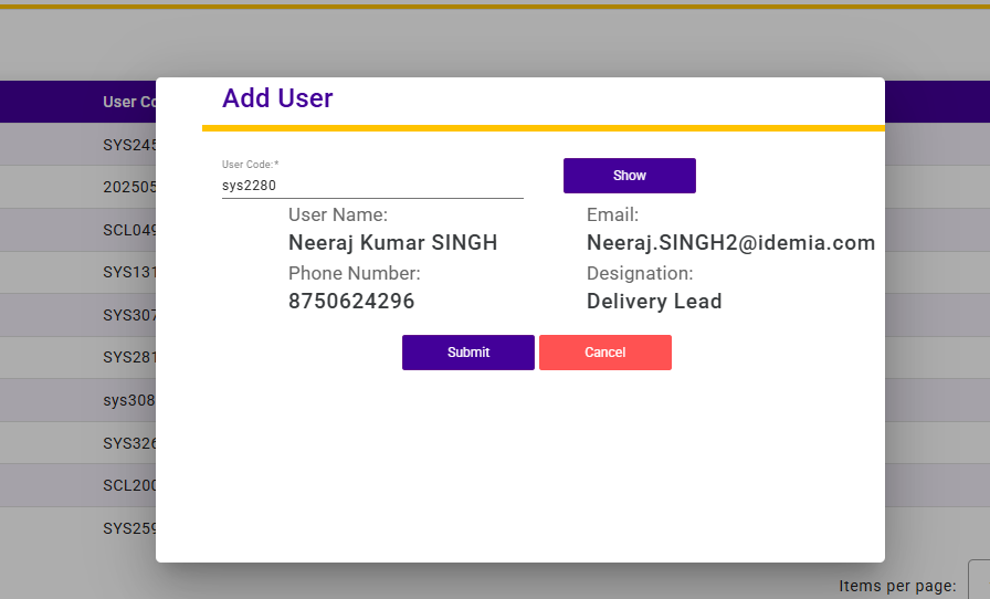 The Users List screen displays all registered users in the system along with their basic details and current status. It enables administrators to monitor and manage user access effectively.