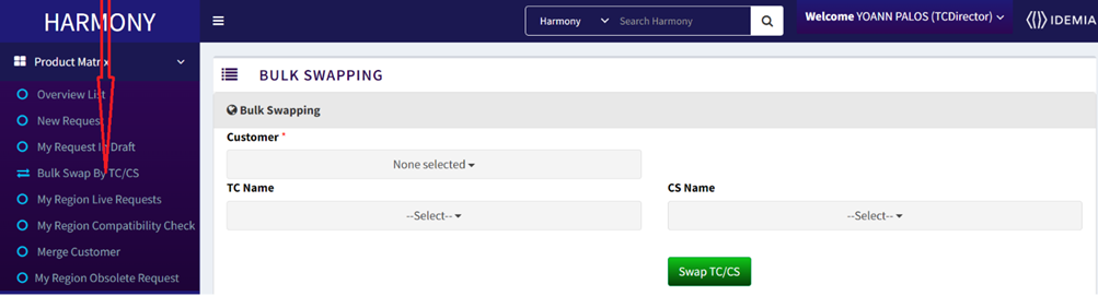 • Only TC Director can do the Bulk Swap for TC & CS for respective customers.