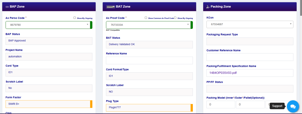 - If BAT Compatibility has been done on Request with respect to AxPersoCode then while creating Harmony Request, Request will go live directly with Green in Symbol on Ax Proof Code and Ax Perso Code
