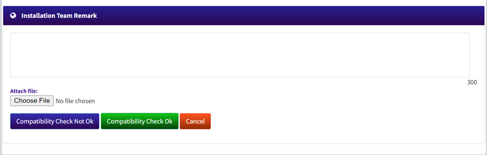 - If Installation Team does the Compatibility check not okay, then request will go directly to assigned TC & CS draft list for further actions as per Installation team remarks.