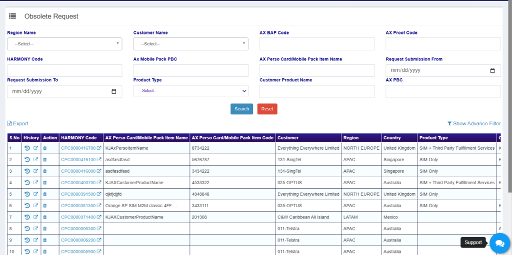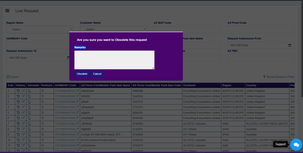 • Once request gets obsoleted then it will display under respective TC/CS Obsolete List