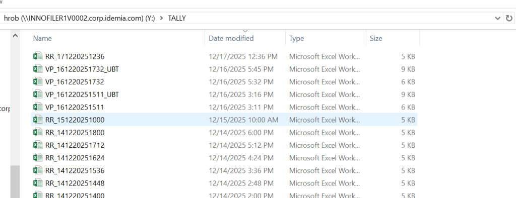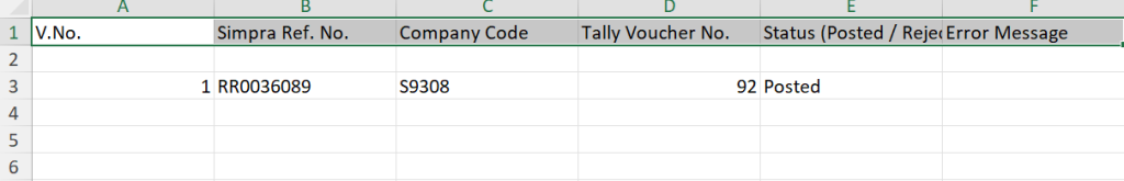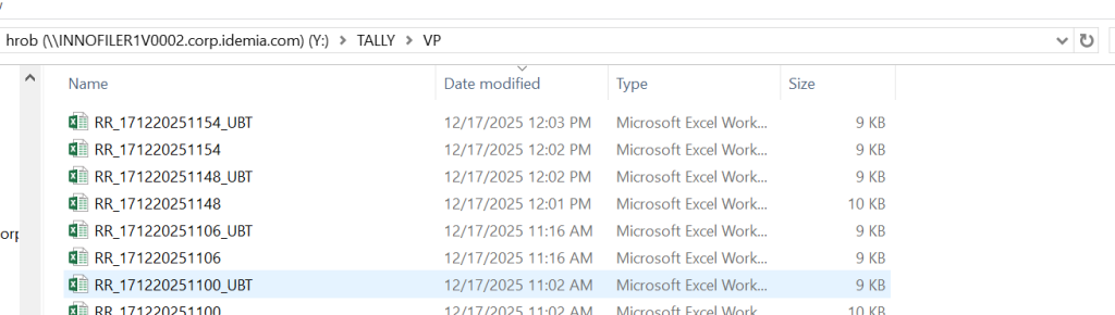 - After successful posting, Tally generates a response file with the extension _UBT.xlsx in Share folder “Tally/VP”.